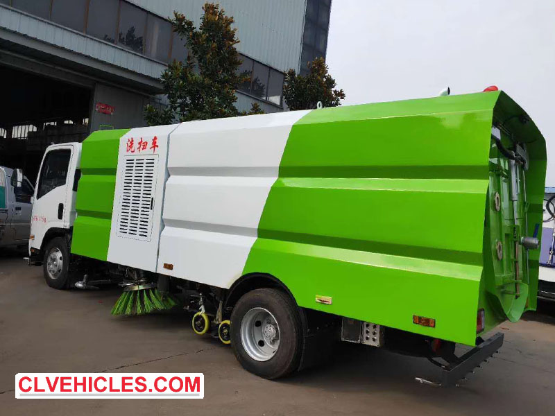 ISUZU Road Sweeper Truck combines a 5000L water tank for dust control and a 5000L garbage tank for waste collection, ensuring thorough and efficient street cleaning.