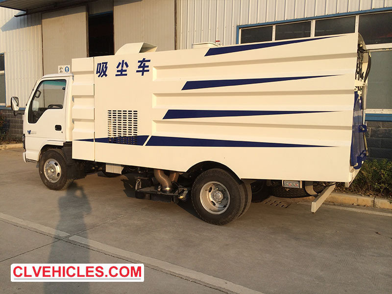 ISUZU Road Dust Vacuum Cleaner Truck combines a 5000L dust tank and 1000L water tank for waste collection, ensuring thorough and efficient street cleaning.